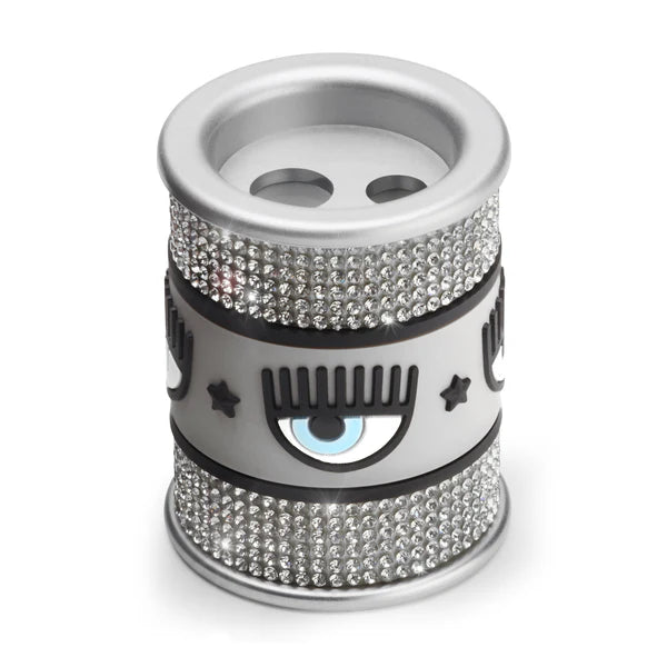 Temperino color argento con strass e logo colorato Chiara Ferragni.